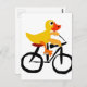 Funny Yellow Duck Riding Bicycle Postkarte