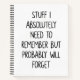 Einfach ausgekleidetes weißes Notizbuch für Noten, Listen und mehr mit einem lustigen Cover-Zitat - Stuff I Absolut zu erinnern, aber wahrscheinlich wird vergessen.