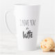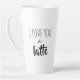 Funny Quote I Liebe You A Latté Latte Tasse ist eine einfache kalligraphische Schrift Schrift Schrift Design in weiß und schwarz. Humorer Satz "I Liebe you a latté" ist auf beiden Seiten der großen Tasse. Auch in kleiner Größe erhältlich. Es ist eine tolle Geschenkidee für jemanden, der Liebe Kaffee oder Latte.