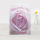 Ein zartes, blassrosa Rosa erhob sich nah auf. Eine wunderschöne Muttertagskarte, die Sie anpassen können, um Ihre eigenen Gefühle zu vermitteln.