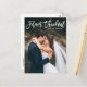 Elegante vertikale Karte, um Ihren Gästen zu danken, dass sie ein Teil Ihres Hochzeitstages. Dieses anpassbare Foto danke Ihnen Postcard mit weißem handgeschriebenem Skript-Overlay. Diese Dankeschön-Karte ist ideal für Hochzeiten, Abschlüsse und andere Veranstaltungen.