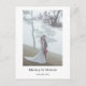 Ein rührendes Andenken, um geliebter Menschen an Ihrem besonderen Tag zu gedenken. Diese benutzerdefinierte Hochzeitsfoto-Postkarte verfügt über ein wunderschön gestaltetes Layout für Ihr ausgewähltes Bild und eine herzliche Nachricht. Perfekt zum Teilen von Erinnerungen oder zum Versenden von Dankeschöns, verbindet sie Sentimentalität und Eleganz in einem zeitlosen Stil, den Ihre Gäste für immer schätzen werden.