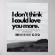 Ein zeitloser Ausdruck der Liebe. Dieser minimalistische Druck zeichnet sich durch eine herzliche Botschaft aus, die sich perfekt für einen romantischen Anlass eignet. Die elegante Typografie und der ruhige Hintergrund schaffen eine beruhigende und elegante Atmosphäre. Gib die Gabe der Liebe, die ein Leben lang dauert.