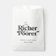 Fügen Sie eine Touch von Eleganz mit diesen modernen und minimalistischen For Richer oder Poorer Gefallen Taschen, die eine wunderbare Ergänzung zu jedem Hochzeitsempfang. Persönlich mit den Namen und dem Hochzeitsdatum des Paares abgestimmt und sogar eine herzliche handgeschriebene Nachricht auf der Rückseite für eine einfache, aber herzliche Touch zu Ihrer Hochzeitsfeier.