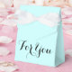 Eine elegante, schlichte und stilvolle, blass-blaue Gastgeschenk-Tasche mit den Worten "für Sie" in einem fließenden, blumigen Drehbuch ist die ideale Geschenktasche für Gäste und Gäste. PERSONALISIEREN SIE IT - Fügen Sie Ihr Firmenlogo hinzu oder passen Sie es mit einem Foto an, um es einzigartig zu machen.