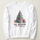 Das Sweatshirt "All Booked for Christmas" mit einem Weihnachtsbaum aus gestapelten Büchern, dekoriert mit Ornamenten, Grünpflanzen und Geschenken, ist festlich und gemütlich. Ideal für Buchliebhaber, Lehrer, Bibliothekare und alle, die diese Feriensaison lieber lesen möchten. Ein lustiges und einzigartiges Weihnachtspulli, das ein durchdachtes Urlaubsgeschenk für Leser, Buchwürmer oder Mitglieder Ihres Buchclubs macht. Ideal für Feierlichkeiten, lässige Kleidung oder Feiern der Saison mit literarischer Drehung!