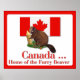 Naughty play on words for these fun gifts and apparel. They feature a sitting beaver with Canadian Flag in the background. Text says "Canada... Home of the Furry Beaver"