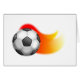 Farbenfrohe Abbildung eines Fußballballs, der durch die Luft fliegt, wobei ein Spur von Hitze oder Flammen darin verlassen wird. Bilder auf verschiedenen Geschenken und Produkten erhältlich.