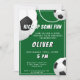 Fußball Ball Spaß Sport Kindergeburtstag Einladung. Das Design hat einen lustigen Text "Kick up some fun" und Fußball Bälle auf einem grünen Hintergrund. Fügen Sie Ihre Informationen hinzu.