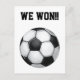 Soccer Ball, Wir haben gewonnen! Postcard von Stell dir mitgebracht! Design zeigt unseren original gemalten schwarz-weißen Fußball mit den Worten WE WON!! Lass allen mit unserer Sportpostkarte von heute deine Gewinnchancen. Sei stolz und habe einen Ball. Behalt mit dem Gewinnen!