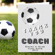 Modern Soccer Vielen Dank Coach Card. Die Karte hat einen schwarz-weißen Fußball. Eine tolle Karte für Sporttrainer, Schultrainer, Mama- oder Papa-Trainer, etc. Passen Sie jeden Text auf der Karte an. Geben Sie den Namen, den Teamnamen und das Jahr des Trainers ein.
