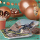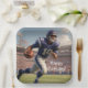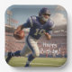 Diese Geburtstagsparty-Teller haben einen Fußballspieler, der für ein Tor läuft.