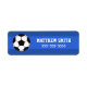 Basketball-Eigenschaftsmarken mit einem Fußball auf blauem Hintergrund. Weißer Text. Fügen Sie einen Namen und eine Kontaktmöglichkeit hinzu, z.B. eine Telefonnummer oder E-Mail-Adresse, die ideal für die Kennzeichnung Ihrer Kinderbücher und sonstigen Gegenstände ist.