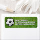 Ob Fußball oder Fußball, das Spiel wird von Millionen geliebt. Auf einem Grasbett wird eine Fußball-Kugel abgeschnitten, die gewartet wird, auf diesem Rücksendeetikett gekickt zu werden. Ein Name und eine Adresse werden gegen das Gras gedruckt. Perfekt für den ultimativen Fußballfan, Fußball- oder Fußball-Trainer, Mannschaften, Fußballclubs, Sportgeschäfte oder jeden Sportfachhandel.