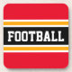 Dieses sportliche, farbenfrohe Design zeichnet sich durch einen athletischen FOOTBALL-Text in einem schwarzen, hervorgehobenen Streifen mit weißen und gelben pinstripes gegen leuchtend rote äußere Streifen aus. Der Text und die Farben in diesem Design können personalisiert sein.