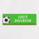 Kinder-Labels mit individuellem Fußball-Thema mit grünem Hintergrund, Gras, Ball und dem Namen ihrer Kinder.
