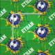 Fußball wiederholt Fußball mit einem Tormuster Spat in den Netzstoff individuelle Name. Dunkelblau und weiß mit einem gelben Splating im Tor mit eigenem Namen in weiß. Die Hintergrundfarbe ist zur Zeit grün, kann aber der Farbe Ihrer Wahl personalisiert sein. Ideal für Fußball- und Fußballfans. Anpassen mit Ihrer eigenen Wahl des Namens, derzeit liest Ethan. Kunst und entworfen von Sarah Trett.
