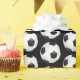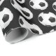 Packpapier gezeigt mit einem Sport-Fußballdruck auf einem schwarzen Hintergrund. Fertigen Sie dieses Einzelteil besonders an oder kaufen Sie, wie ist.