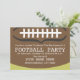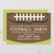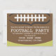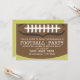 Eine Fußball-Party Einladung mit einer übergroßen Abbildung eines Fußballs, die den größten Teil der Einladung bedeckt. Der Hintergrund unten und auf der Rückseite ist grün, kann aber angepasst werden. Text ist weiß.