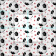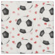 Dieses fußballbezogene Gewebe zeichnet sich durch ein einfaches Tropfenmuster aus schwarz-weißen Fußbällen aus, umgeben von verstreuten rosa und roten Konfetti-Herzen auf weißem Hintergrund - die Fußbälle messen etwa 1-1/2 Zoll, aber das Muster lässt sich nach Ihren Wünschen skalieren - von katz_d_zynes