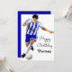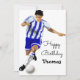 die perfekte Geburtstagskarte für Fußball- oder Sportliebhaber/Fußball-Liebhaber, mit einem Fußballspieler, der mit einem Ball mit dunkelblauem Rücken der Marine läuft