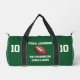 Diese personalisierte Tasche ist ein einzigartiges und lustiges Geschenk für einen Fußballspieler, eine Mannschaft oder einen Trainer! vorne - ein Fußball auf dunkelgrünem Hintergrund mit weißer Schrift - sehr hell und auffallend. Einfach die drei Zeilen Text und optionale Spielernummer auf dieser modernen, trendigen Duffle-Tasche ändern. Auch leicht zu ändern Farbe der Tasche - mehrere andere Farben verfügbar. Alle Rechte vorbehalten © 2024 Alan & Marcia Socolik.