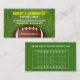 Auf einem Grasbett wird ein Fußball abgeschnitten, der gewartet wird, um abgeholt zu werden. Die wichtigsten Kontaktinformationen drucken auf dem Gras mit dem Webinardruck auf dem Fußball selbst. Die Rückseite zeigt ein Diagramm eines Fußballfeldes gegen solides Grün. Ein Slogan oder andere Informationen werden oben gedruckt. Ideal für Fußballtrainer, Mannschaften, Sportläden oder Sportfachhändler. Verfügbar mit passenden Produkten.