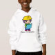 Pour l'entrepreneur de demain. Garçon aux cheveux violets dans un chapeau jaune dur aux plans bleus. Avec les mots "futur entrepreneur".