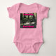 Dieser Babybodyanzug zeigt ein kleines Mädchen mit ihren schwarz-bräunlichen Hundewelpen, die durch den Wald spazieren und die Worte Future Little Coon Hunter.