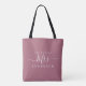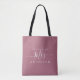 Zukünftige Frau moderne individuelle Name tote Tasche mit dem Text Frau in weißer, eleganter Schrift Kalligraphie auf einem lila Hintergrund. Fügen Sie einfach den verheirateten Namen der Braut hinzu und das perfekte Brautparty Geschenk ist für Sie bereit zu geben. Exklusiv für Sie entworfen von Happy Dolphin Studio.