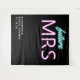 Coole moderne "Future Mrs." personalisierte, schwarze Foto-Messestände für Ihr Brautparty, mit "Future" und "MRS." in aquamarin blauen und heißen rosa Schriften mit Neonlichteffekt geschrieben. Sie können mit Ihrem Namen und Ihrem Duschdatum personalisieren. Die untere Ecke wird für einen Bereich, in dem Sie Fotos mitnehmen können, leer verlassen.