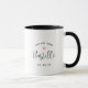 Die Tasse "Future Mrs." für Hochzeitskaffee in der Muttersprache ist mit modernen schwarzen Schriftzeichen personalisiert, die mit dem verheirateten Nachnamen und dem Hochzeitstermin der Braut werden können. Enthält einen niedlichen rosa Herzinfarkt. Das ist die verlobte Braut!