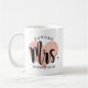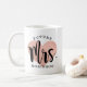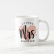 Personalisierte Kaffee-Tasse für die Zukunft Frau verfügt über ein modernes, schwarzes Drehbuch mit eigenem Nachnamen und einem Rose-Gold-Hintergrund.