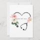 Ein modernes, einzigartiges und elegantes Aquarellrosa-Stethoskop mit Blumenmuster in Herzform für eine geschlossen Party Einladung mit Schrift und Serifentypografie. Moderne mit einer Touch von Eleganz. Herzförmiges Blumenstethoskop auf der Rückseite der Einladung mit der Klasse von 2022 in der Mitte. Das vollständige Sortiment entsprechender Materialien finden Sie unter: https://www.zazzle.com/store/bodyenglish/collections?pg=1&ps=92&view=private