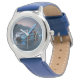 Kinderuhr aus Edelstahl mit blauem Lederarmband