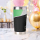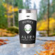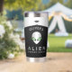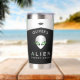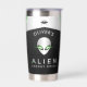 This personalized tumbler features a sleek metallic alien face with glowing green eyes and a minimalist UFO motif, combining sci-fi style and bold contrast in black, silver, and neon green tones.