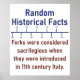 Die Geschichte ist faszinierend. Beweisen Sie Ihre Faszination für diese historische Tatsache: Die Gabel wurden als opferhaft angesehen, als sie im 11. Jahrhundert eingeführt wurden. Ideal für Triviale und Geschichtsfans.