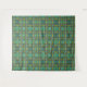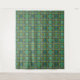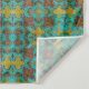 Lebhafte blaue und gelbe Muster verbinden sich in einem symmetrischen, kaleidoskopischen Design. Die komplizierten Details erzeugen einen faszinierenden Effekt, der an einen Wandteppich oder ein Mosaik erinnert.