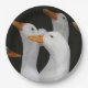 Fügen Sie einem Party oder Picknick Spaß mit diesen Tellern mit Tiermotiven hinzu, die das Foto eines Gaggles weißer Enten mit orangefarbenen Scheinen enthalten. Wählen Sie Ihre Papierplattengröße aus.
