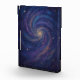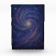 A vibrant and mystical depiction of a spiral galaxy, rendered in rich tones of deep indigo, sapphire blue, and royal purple. A brilliant, warm gold light emanates from the swirling center, contrasting with the cool, dark space and the scattering of shimmering, distant stars. The composition evokes a sense of deep space, mystery, and cosmic wonder.