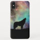 Der galaktische Wolf zeigt eine Silhouette von einem Wald, der über den Sternen heult.