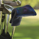 Eine Galaxie mit lila, grünen, blauen und schwarzen Sternen