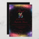 Elegant Sweet 16 invitation avec un design cosmique d'inspiration galaxie avec des accents multicolores chatoyants sur un arrière - plan sombre. La typographie moderne et les détails vibrants créent un look élégant et inoubliable pour une célébration d'étape. Personnaliser pour une touche personnelle !