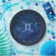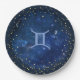 Papier Teller mit einem künstlerischen Hintergrund und dem blauen Gemini-Zodiaksymbol . Passen Sie Ihre Auswahl an Nummern, Monogrammen oder Namen für eine persönliche Touch an. Das bringt himmlische Eleganz zum Geburtstag eines Gemini .