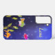 Coque Samsung Galaxy S22+ en Deep Blue avec poissons comiques illustrés. Le nom peut être changé. Merci à Creative Fabrica pour certains des éléments du design.