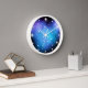 Galaxy Sternlichtuhr mit einem kosmischen Splash von blauen und lila Nebel Weltraum Wolken. Große funkelnde Sterne markieren die Zahlenpositionen. ♡ Idyllfire