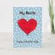 Personalisieren Sie den gesamten Text auf dieser Karte: Name, Gruß auf der Vorderseite, Nachricht innen. Lächeln und Glück, Wärme und Liebe, Freundschaft für immer. Ein großes rotes Herz mit einem großen Lächeln illustriert den bearbeitbaren Gruß "Happy Galentine's Day". Zwei Paare von kleineren roten Herzen und ein blass blauer Hintergrund mit Herzen vervollständigen das Design. Das Innere dieser Karte hat eine Streuung weißer Herzen auf den schmalen blauen Hintergründen, um die Vorderseite zu ergänzen. Die Standardnachricht lautet "Friends Forever".