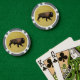 Ein digitales Bild des amerikanischen Bison, oder Büffel, überlagert auf einem hirnbräunlichen Lederhintergrund. Der Bison (Bison bison), das größte Landsäugetier Nordamerikas, gilt als eine der wichtigsten Arten: Sie umherwanderten einst den Kontinent in großen Herden, und ihr Weidedruck trug dazu bei, die Ökologie der Großen Ebenen zu formen. Es wurden zwei Unterarten oder Ökotypen beschrieben: die Ebenen Bison (Bison Bison), kleiner und mit einem gerundeten Höcker, und der Holzbison (Bison bison athabascae), der größere von beiden, mit einem größeren, quadratischen Höcker. Der Bison ist ein relativ neuer Einwanderer nach Nordamerika, der aus Eurasien stammt und über die Beringstraße wanderte. Vor etwa 10.000 Jahren ersetzte er den Steppenbison (Bison priscus), einen früheren Einwanderer, der viel größer war. Man geht davon aus, dass die Steppe-Bison aufgrund eines sich wandelnden Ökosystems- und Jagddrucks infolge der Entwicklung des Clovis-Punktes und der dazugehörigen Technologie ausgestorben ist und die Jagdfähigkeiten verbessert wurde. Während desselben Zeitraums verschwanden andere Megafauna und wurden bis zu einem gewissen Grad durch einwandernde eurasische Tiere ersetzt, die sich besser an räuberische Menschen angepasst hatten. Der bestehende Bison, technisch eine Zwergform, war eines dieser Tiere. Einst gab es schätzungsweise 20-30 Millionen Bisons, auch als Büffel bezeichnet, die durch Nordamerika reisten. Ihre Reichweite bestand einst ungefähr aus einem Dreieck zwischen dem Großen Bärensee im äußersten Nordwesten Kanadas, südlich den mexikanischen Staaten Durango und Nuevo León und östlich entlang der Western-Grenze der Appalachen. Die ersten Durchfahrten Nordamerikas, mit Ausnahme der zeitverschobenen Wege von Mastodon oder Musko, waren die Spuren von Bison und Reh in der saisonalen Wanderung und zwischen fütternd Gelände und Salzlecken. Viele dieser Routen, die von unzähligen Hufen instinktiv nach Wasserscheiden und den Wappen von Hügeln eingezäunt wurden, um den Sommerschlamm und die Winterschneefahrten der unteren Orte zu vermeiden, folgten den Ureinwohnern und waren für die Entdecker unschätzbar. Der Begriff "Büffel" kann für dieses Tier als Fehlbezeichnung betrachtet werden, da er nur in weiter Ferne mit den beiden "wahren Büffeln", dem asiatischen Wasserbüffel und dem afrikanischen Büffel, zusammenhängt. "Bison" ist jedoch ein griechisches Wort, das ein oxähnliches Tier bedeutet, während "Büffel" von den französischen Pelzfelltrappern stammt, die diese massiven Bestien Boeufs nannten, was Ochse oder Bullock bedeutet - daher haben beide Namen, "Bison" und "Büffel" eine ähnliche Bedeutung. In Bezug auf dieses Tier hat der Begriff "Büffel", der auf das Jahr 1635 datiert, eine viel längere Geschichte als der Begriff "Bison", der 1774 erstmals aufgenommen wurde. Der amerikanische Bison steht in engerem Zusammenhang mit der Weisheit oder dem europäischen Bison. Unreguliertes Erschießen von Bison, das in den 1870er Jahren in Massenschlachtungen kulminierte, reduzierte die Population 1889 auf 1.091. Heute leben in Nordamerika etwa 500.000 Bisons. Die meisten sind nicht reiner Bison, sondern wurden in der Vergangenheit mit Rindern gekreuzt und werden als Viehzucht auf Rängen gehalten. Weniger als 30.000 Bisons befinden sich in Erhaltungsbeständen, und weniger als 5.000 sind frei und seuchenfrei. Bisons sind heute in den meisten ihrer historischen Gebiete ökologisch ausgestorben, mit Ausnahme einiger Nationalparks und anderer kleiner Wildtiergebiete. Der Yellowstone Nationalpark hat die größte Einwohnerzahl an frei rotierenden Ebenen Bison (etwa 4.000) und der Wood Buffalo Nationalpark hat die größte Einwohnerzahl an frei rotierenden Holzbisons (etwa 10.000). Ein Bison hat einen schagigen, langen, dunkelbraunen Wintermantel und ein leichteres, hellbraunes Sommerkleid. Der Wintermantel ist so dick und gut isoliert, dass der Schnee seinen Rücken abdecken kann, ohne zu schmelzen. Männliche Bisons sind etwas größer als Weibchen. Normalerweise wiegt Bison zwischen 700 und 2.200 lbs. Der schwerste Wildbull, der je aufgezeichnet wurde, wiegte 2.800 lbs. In Gefangenschaft aufgezogen und für Fleisch gezüchtet, kann der Bison unnatürlich schwer werden und der größte Halbhäuser wiegt 3.800 Pfund. Köpfe und Vorderviertel sind massiv, und beide Geschlechter haben kurze, gekrümmte Hörner, die bis zu zwei Meter lang werden können, die sie für den Status innerhalb der Herde und für Verteidigung einsetzen. Bison sind Herbivoren, Weiden auf dem Gras und Schluchten der nordamerikanischen Prärie. Ihr Tagesprogramm umfasst zwei Stunden Weidezeit, Ruhen und Kuhkauen, dann bewegen Sie sich an einem neuen Ort, um wieder zu grasen. Diese regelmäßige Bewegung sorgt dafür, dass Bison selten eine Fläche übergraben. Bison reiben und rollen oft auf dem Boden, wodurch flache, sauzerartige Depressionen, genannt "Galgen", entstehen. Bison Rolle in wallow, nass oder trocken, bedecken sich mit Staub oder Schlamm. Frühere Erklärungen und aktuelle Hypothesen, die für das Schluckverhalten empfohlen werden, umfassen das mit der Ausschüttung assoziierte Leihverhalten, männlich-männliche Interaktion (typischerweise ruttendes Verhalten), soziales Verhalten für den Zusammenhalt der Gruppe, Spielverhalten, die Linderung von Hautreizungen durch beißende Insekten, Verringerung von Zecken und Läusen und Thermoregulation. Die Weiden waren einst ein gemeinsames Merkmal der Ebenen. Im Winter kann Bison mit ihren Köpfen durch tiefen Schnee graben, um die Vegetation unten zu erreichen. Bison haben ein schlechtes Sehvermögen, aber ein akutes Gehör und einen ausgezeichneten Geruchssinn. Bison kann Geschwindigkeiten von bis zu 35 mph erreichen. Bison hat eine Lebenserwartung von etwa 15 Jahren in freier Wildbahn und von bis zu 25 Jahren in Gefangenschaft. Bison Partner im Spätherbst und Sommer in offeneren schlichten Bereichen. Im H