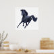 Originelles Kunstdesign eines galoppierenden schwarzen Pferdes von Carolyn McFann von Two Purring Cats Studio auf einem Plakat für Reitsportler.
