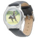 Uhr, Vintage Männeruhr mit schwarzem Lederarmband